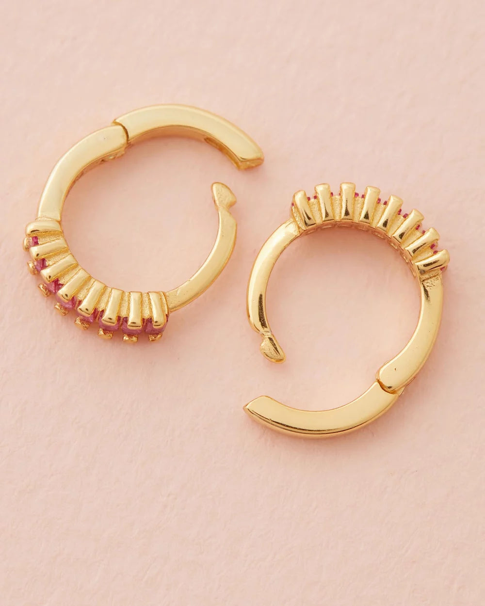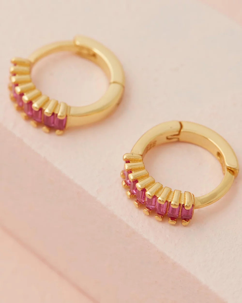 The Lennox Huggies bring effortless shine to any look. Crafted from 925 sterling silver, these 12mm hoops feature elegant baguette crystal detailing that catches the light beautifully, adding a refined edge to your style.