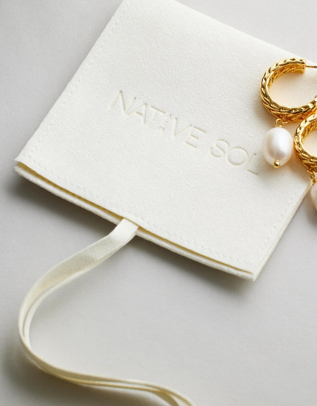 To keep your Native Sol pieces shining bright, gently wipe it with a soft cloth after wear, avoid water and perfumes, and store it in a cozy, dry place.